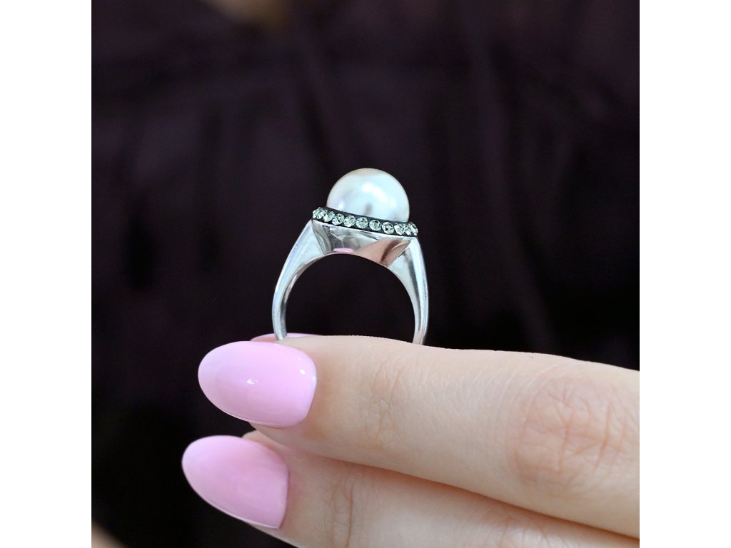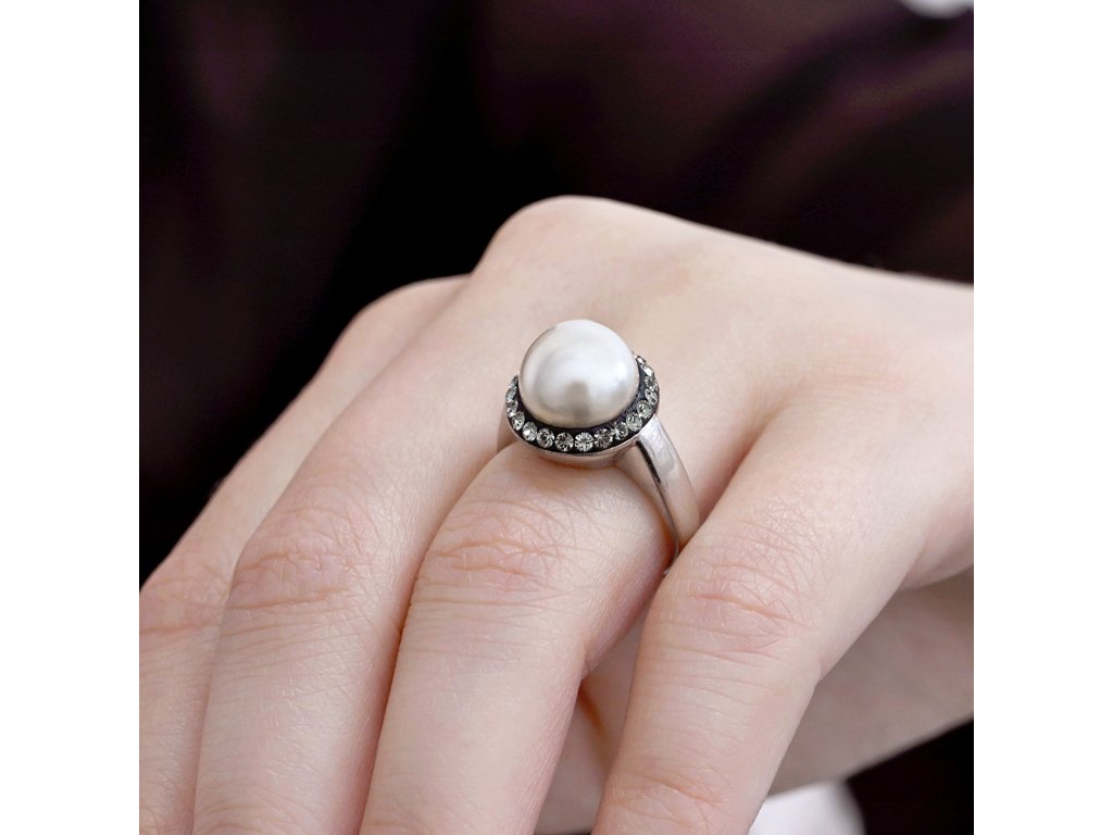 Parametry stříbrného prstenu s šedými krystaly Swarovski a bílou perlou 35021.3