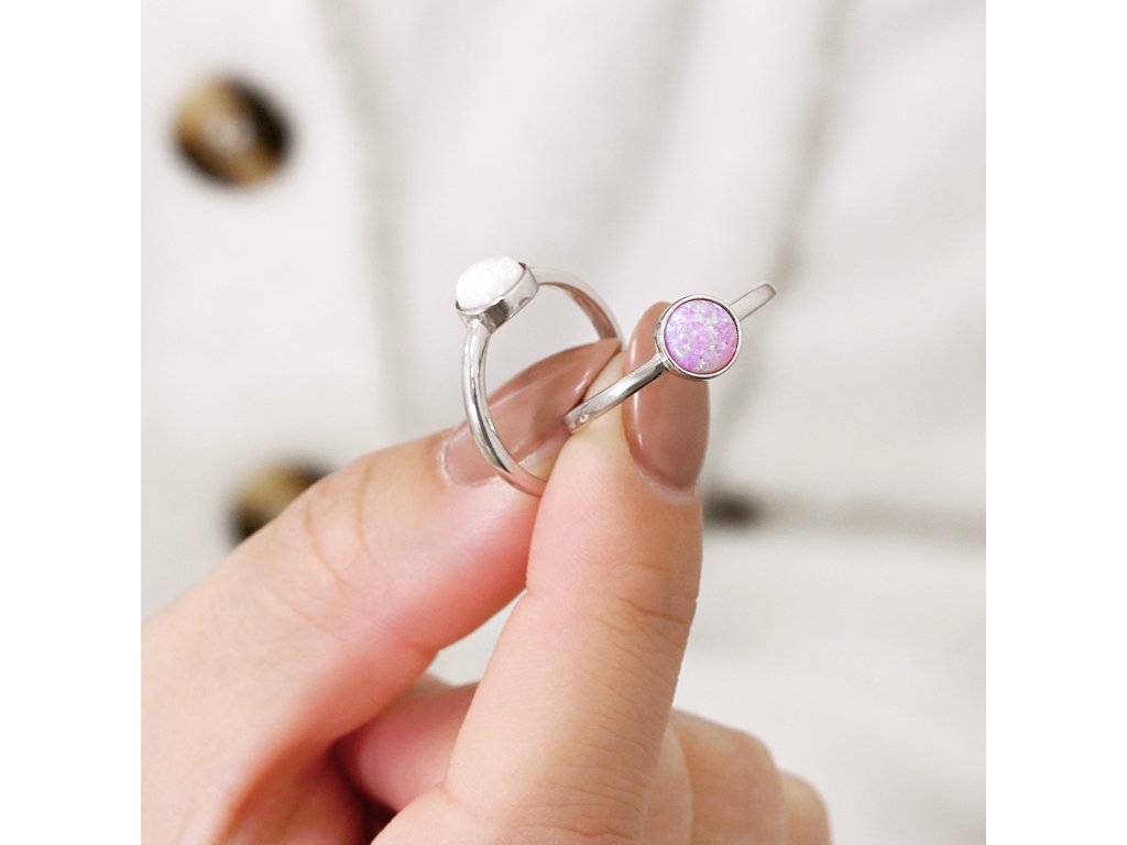 Zdobí jej kulatý syntetický opál v bílé barvě.