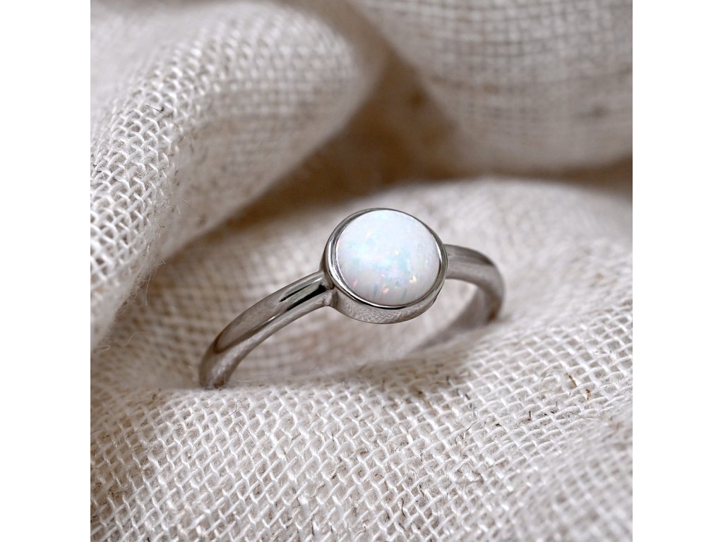 Stříbrný prsten se syntetickým opálem bílý kulatý 15001.1
