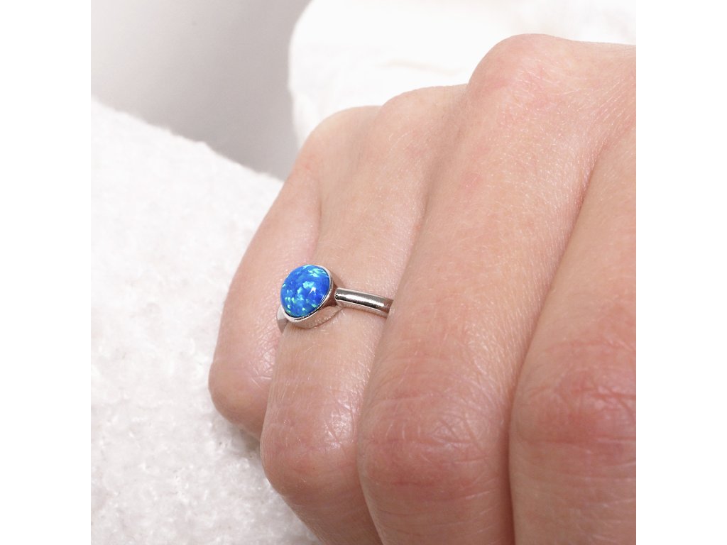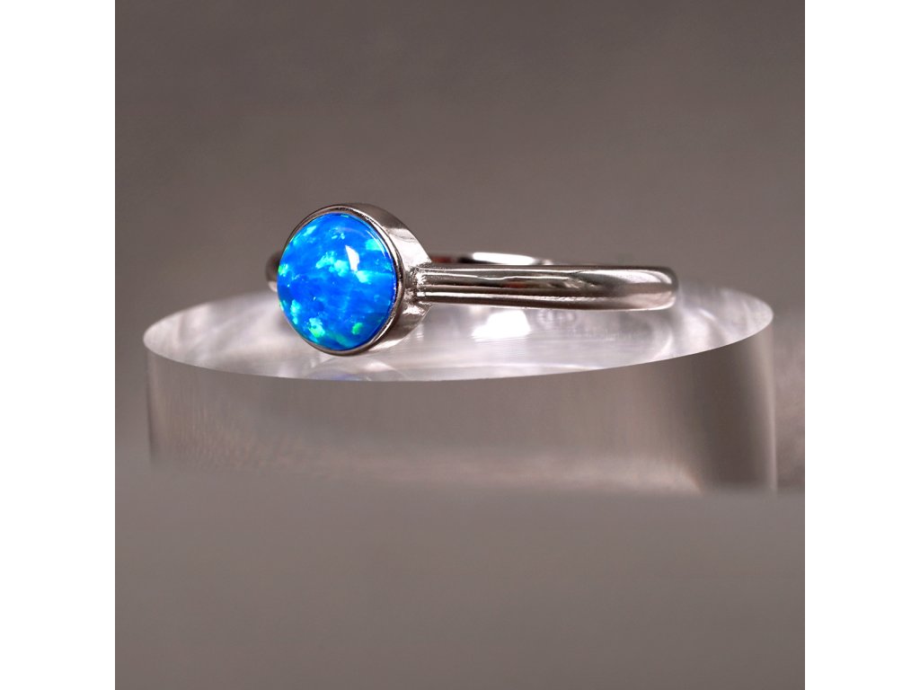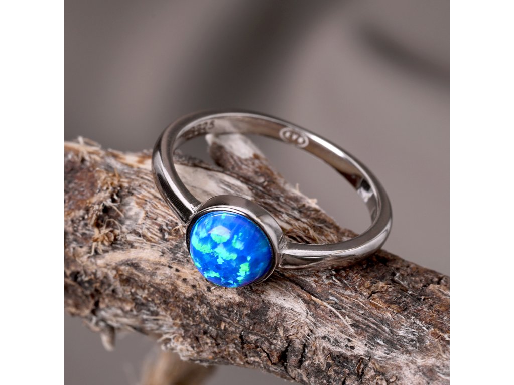 Stříbrný prsten se syntetickým opálem modrý kulatý 15001.3