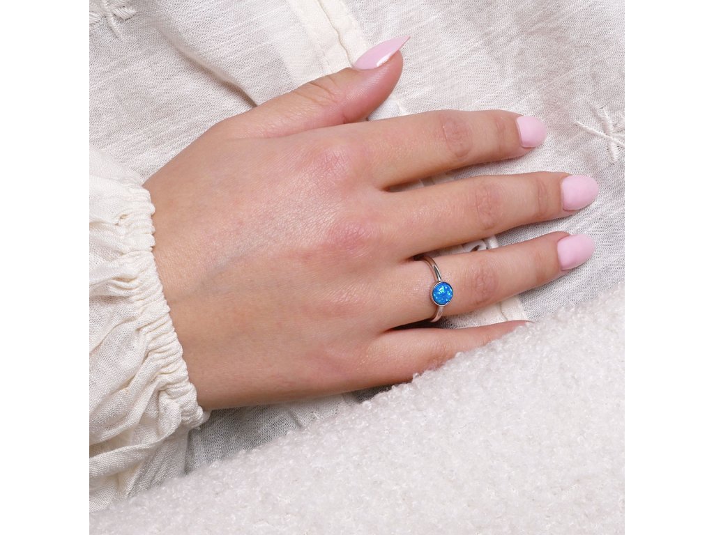 Zdobí jej kulatý syntetický opál v modré barvě.