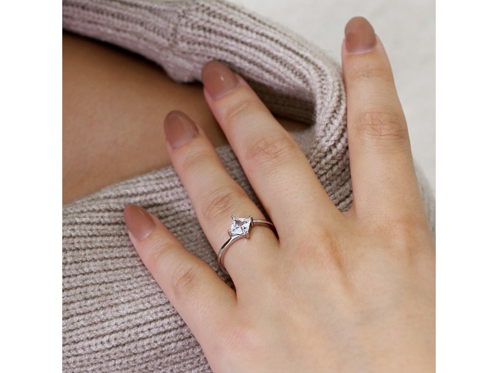Stříbrný prsten se zirkonem čtverec bílý 15006.1 crystal