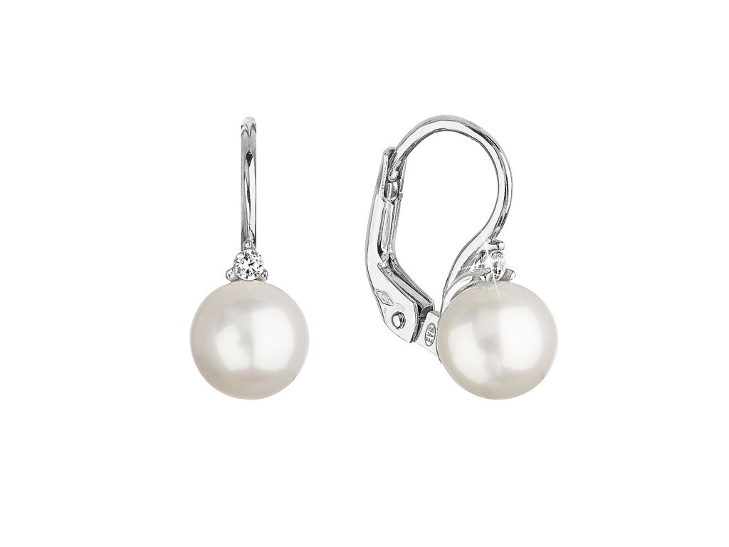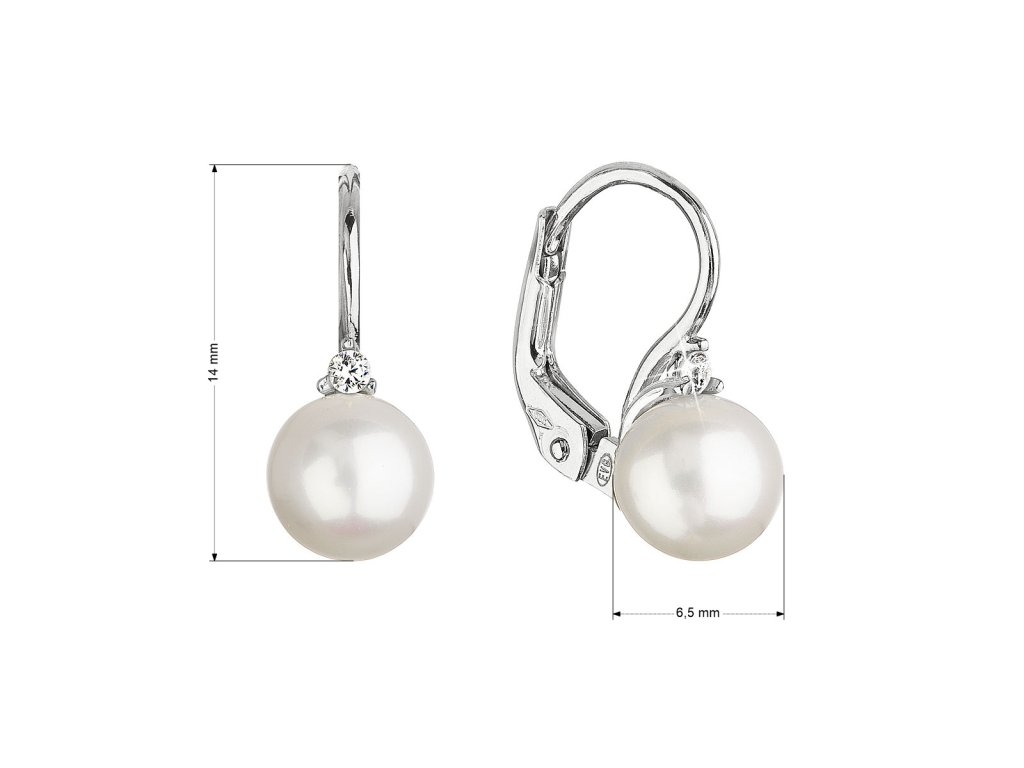 Parametry zlatých 14karátových náušnic bílé zlato s říční perlou a zirkonem 81PZ00023