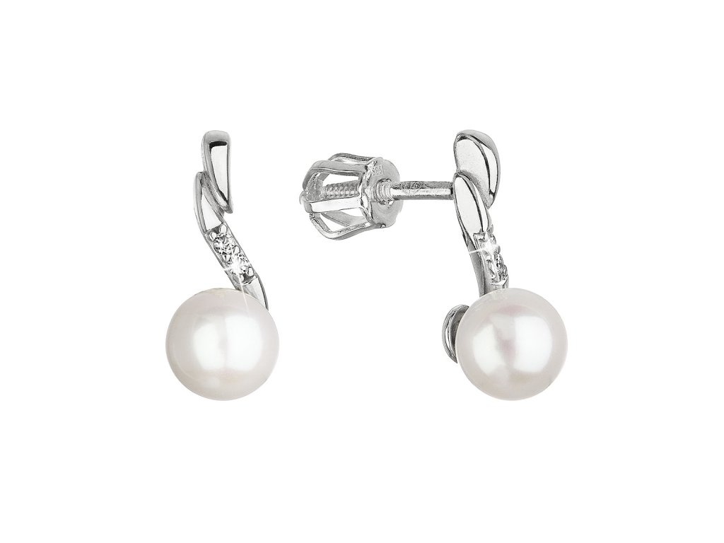Zlaté 14 karátové náušnice bílé zlato s říční perlou a zirkony 81PZ00027