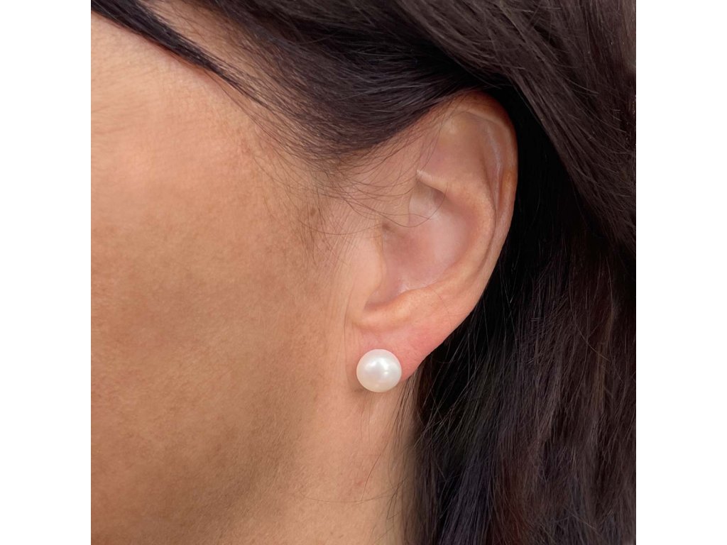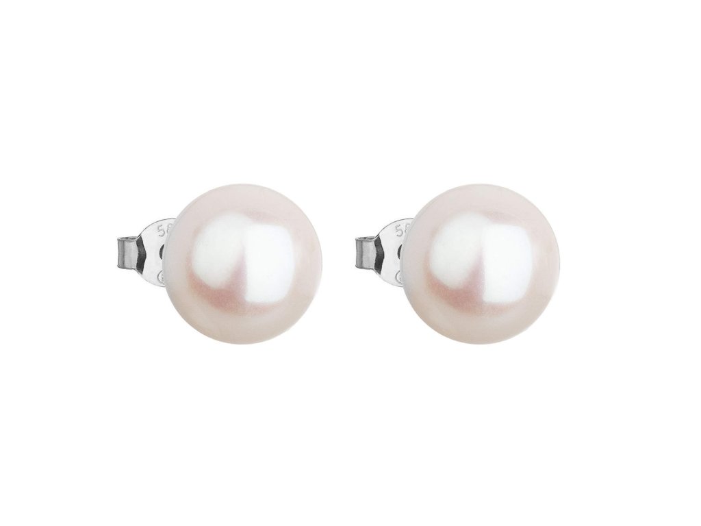 Zlaté 14 karátové náušnice pecky bílé zlato s bílou říční perlou 821043.1 bílá