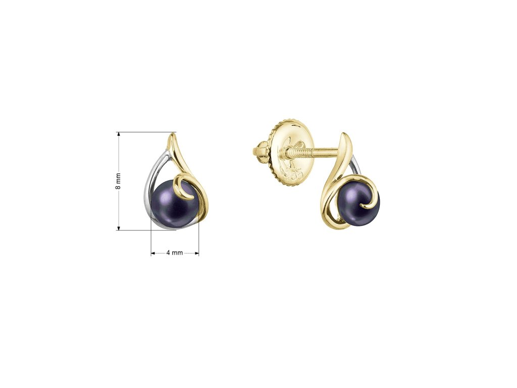 Zlaté 14 karátové náušnice pecky žluté/bílé zlato s peacock říční perlou 91P00035 peacock