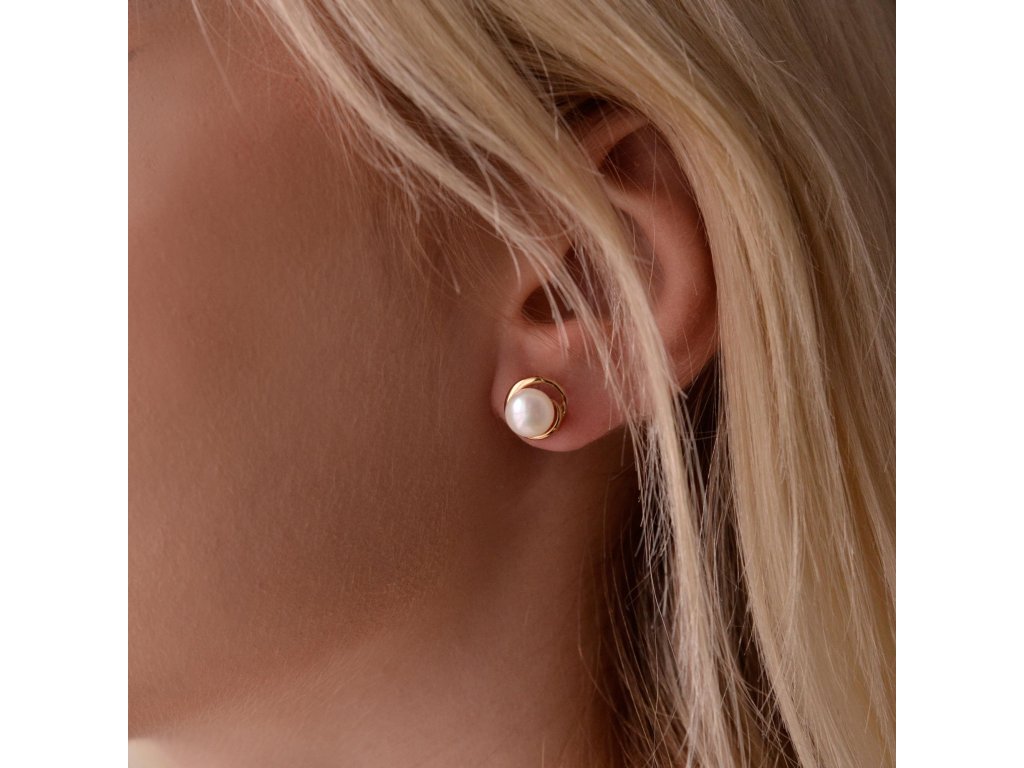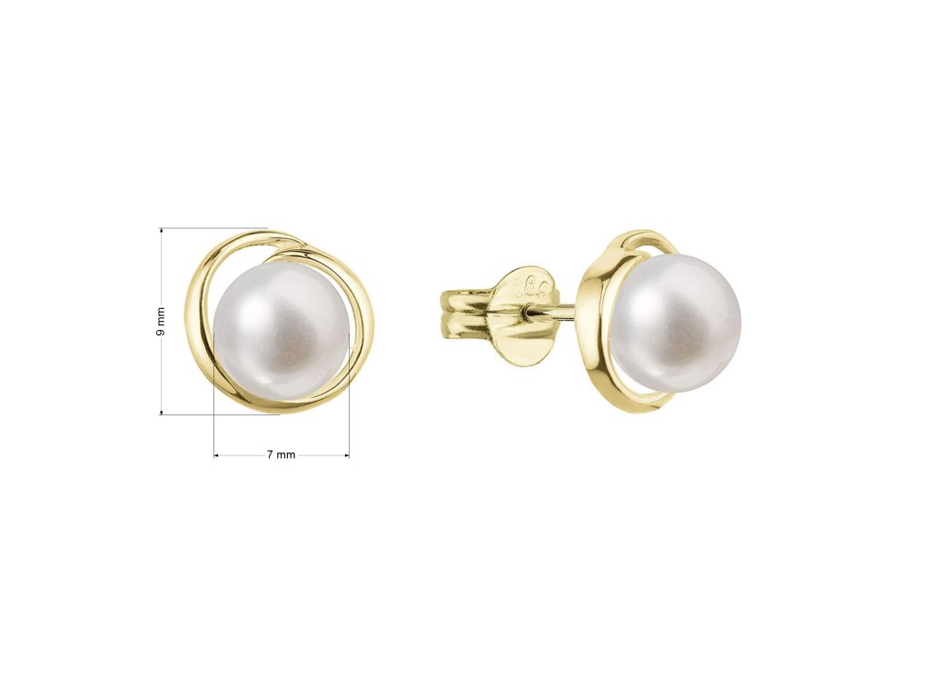 Zlaté 14 karátové náušnice pecky žluté zlato s bílou říční perlou 91P00040