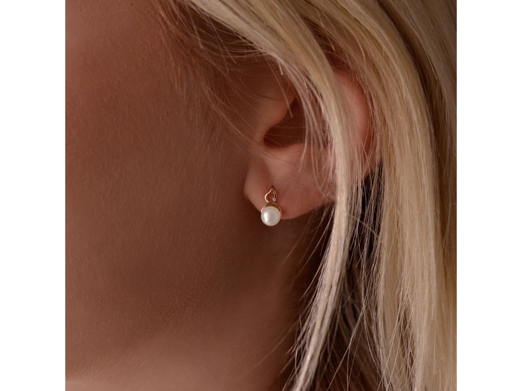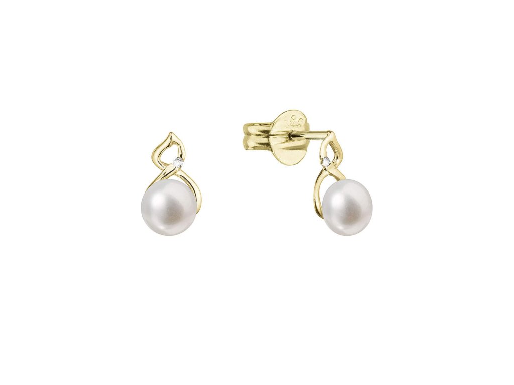 Zlaté 14 karátové náušnice s říční perlou a brilianty 91PB00042