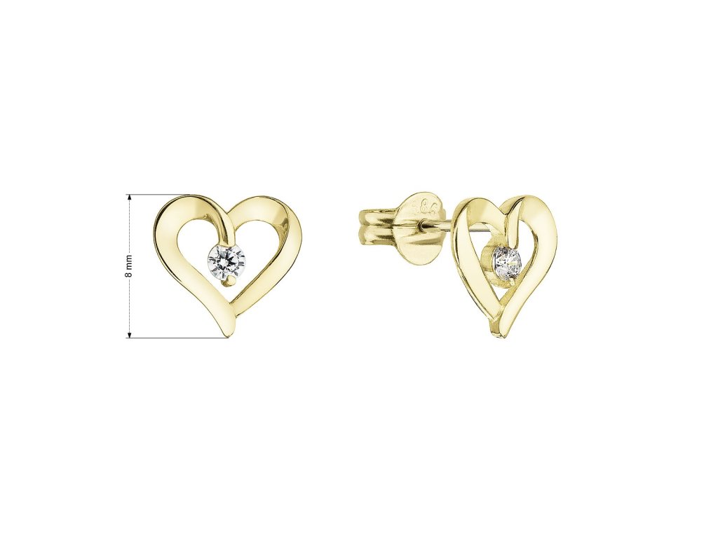 Zlaté 14 karátové náušnice srdíčka žluté zlato s bílým zirkonem 91Z00033 crystal