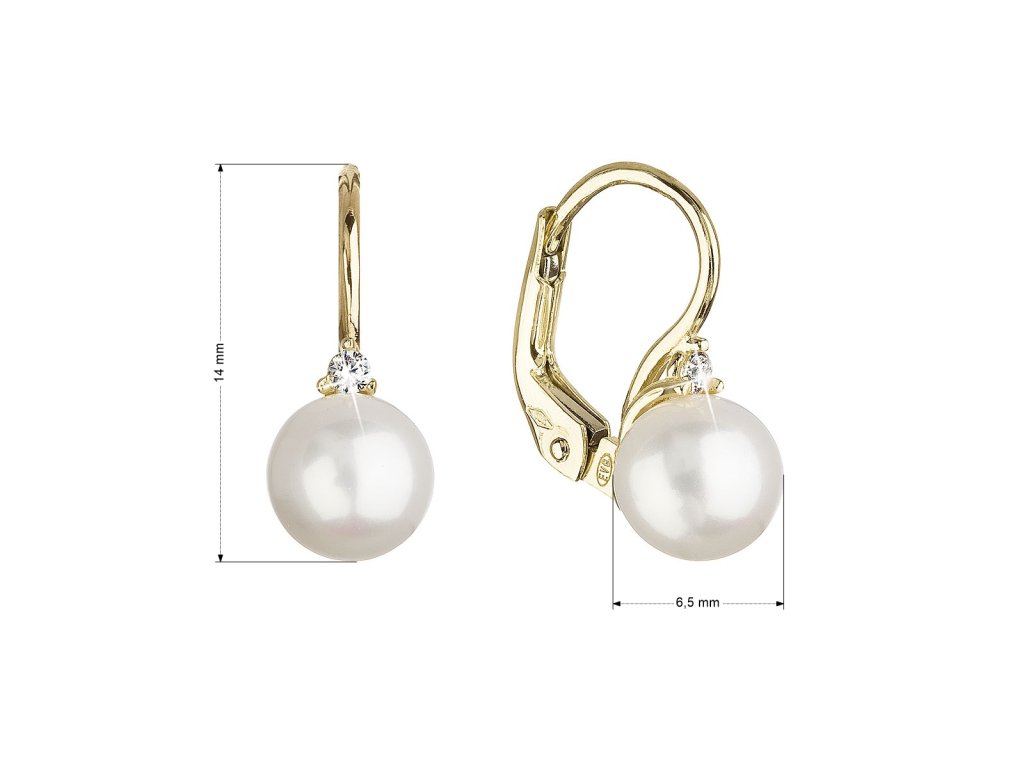 Parametry zlatých 14karátových náušnic žluté zlato s říční perlou a zirkonem 91PZ00023