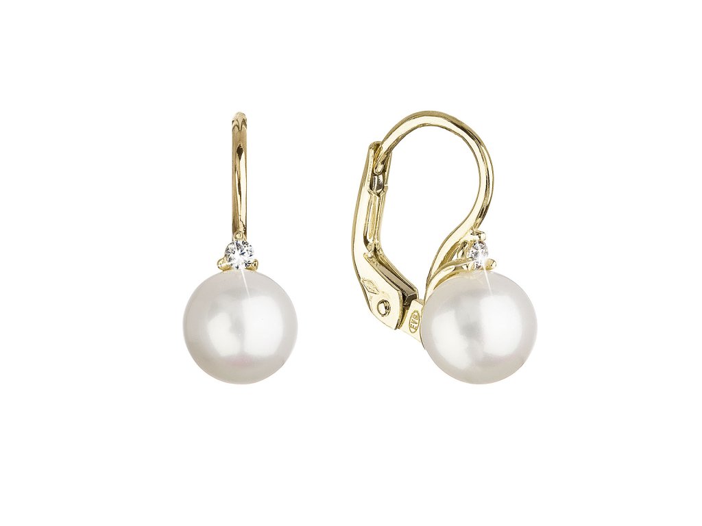 Zlaté 14 karátové náušnice žluté zlato s bílou říční perlou a zirkonem 91PZ00023