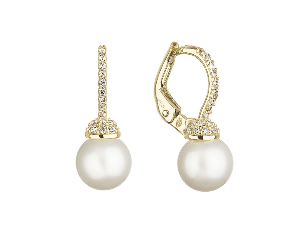 Zlaté 14 karátové náušnice žluté zlato s bílou říční perlou a zirkony 91PZ00022