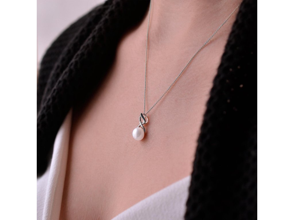 Zlatý 14 karátový náhrdelník bílé zlato s bílou říční perlou a briliantem 82PB00037