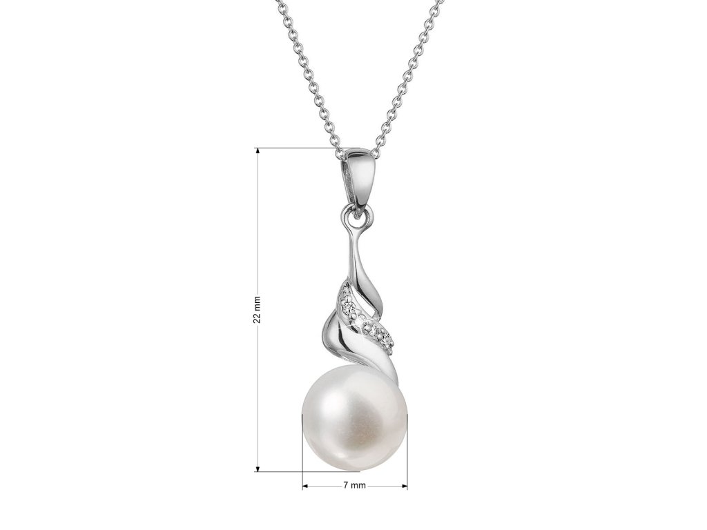 Zlatý 14 karátový náhrdelník bílé zlato s bílou říční perlou a brilianty 82PB00054
