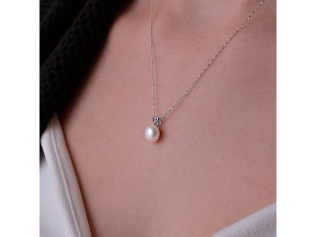 Minimalistický náhrdelník zlaté srdíčko zvýrazněné bílou říční perličkou.Na náhrdelník 82P00043 bylo použito 14 karátové bílé zlato s ryzostí 585/1000 a pravá kultivovaná sladkovodní říční perla. Perla o velikosti 8 mm je té nejvyšší kvalitou AAA.