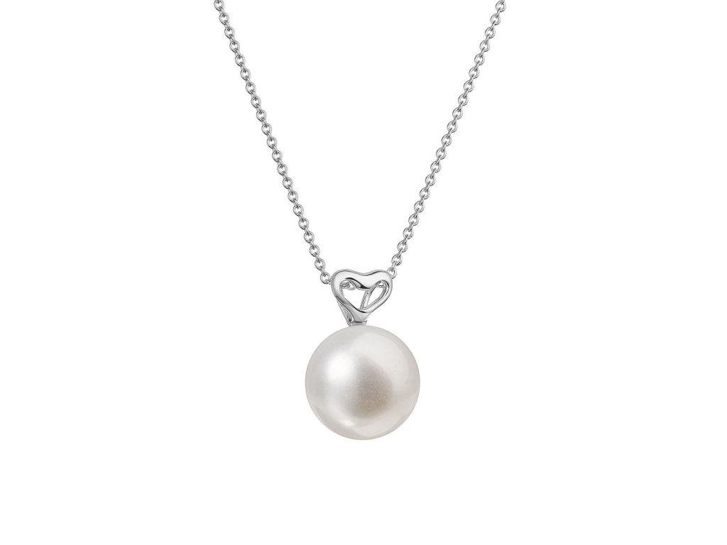 Zlatý 14 karátový náhrdelník bílé zlato srdíčko s bílou říční perlou 82P00043