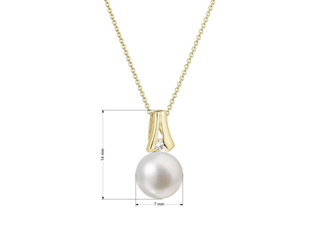 Zlatý 14 karátový náhrdelník s bílou říční perlou a briliantem 92PB00031