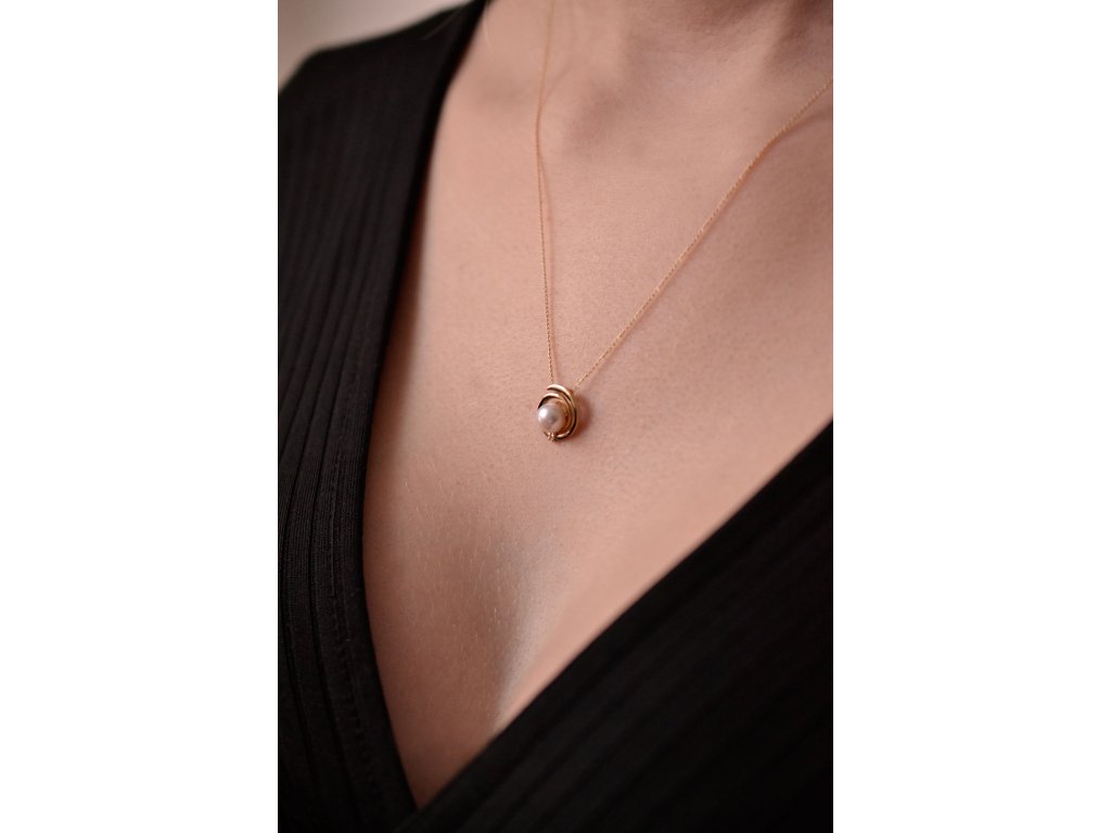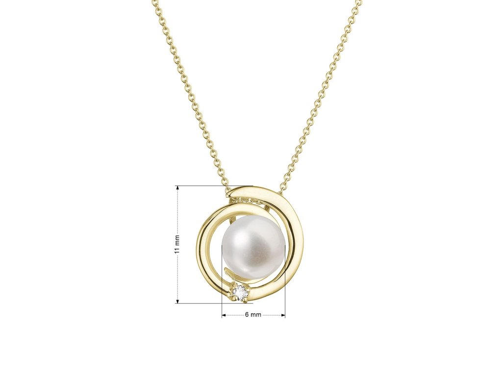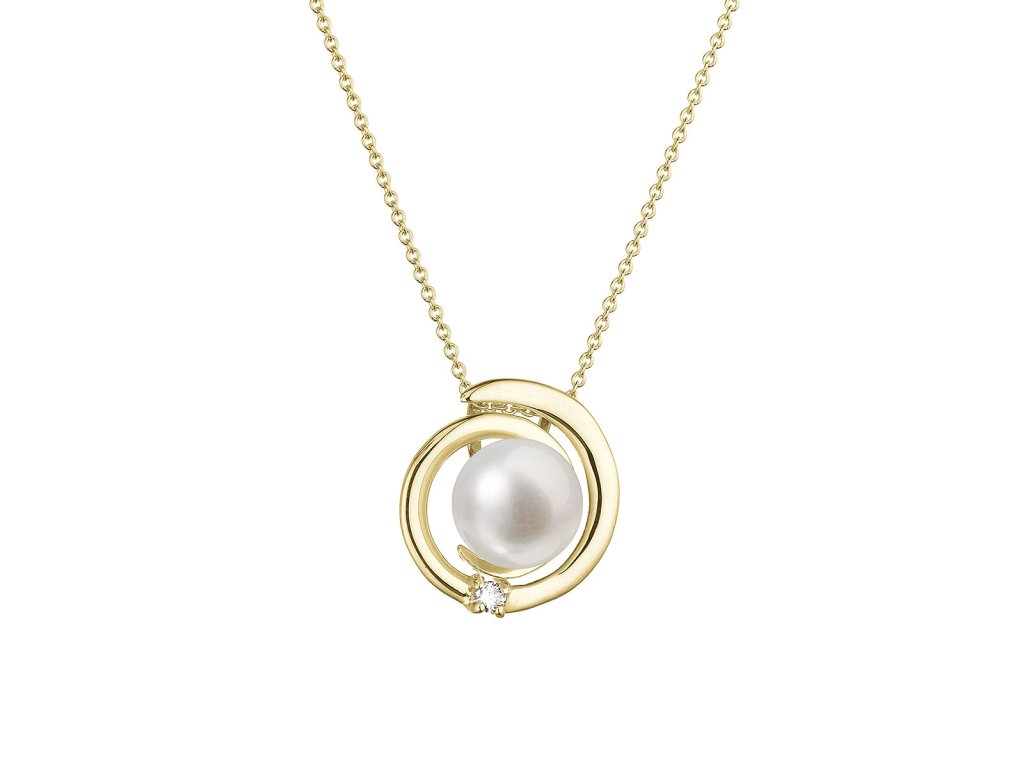 Zlatý 14 karátový náhrdelník s bílou říční perlou a briliantem 92PB00046