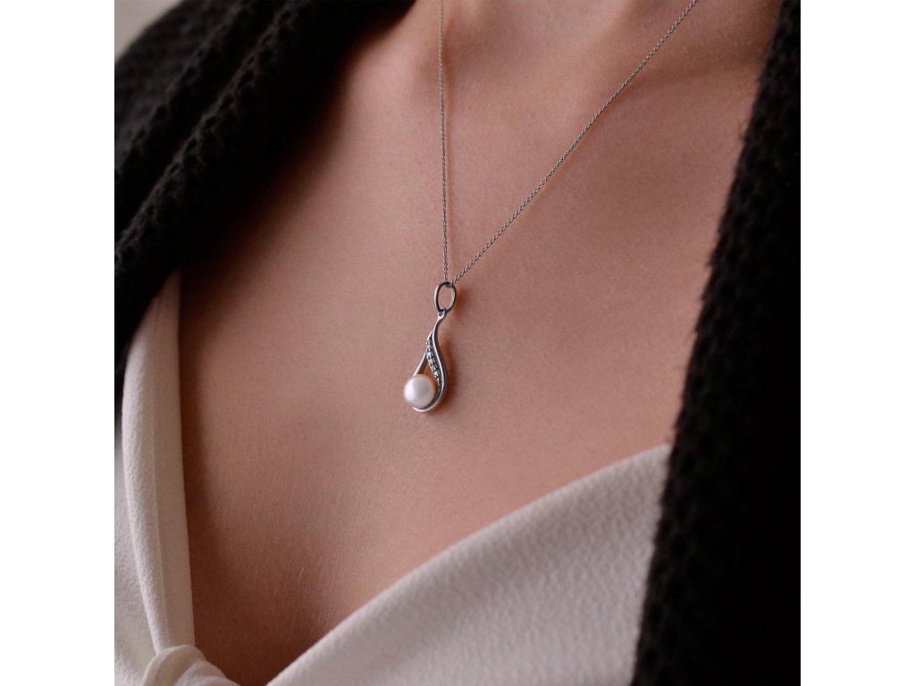 Slza ze zlata a zdobená brilianty přináší náhrdelníku jiskřivý lesk a nadčasovou krásu. Středová říční perla dodává šperku přirozenou a unikátní atmosféru.Na náhrdelník 82PB00042 bylo použito 14 karátové bílé zlato s ryzostí 585/1000 a pravá kultivovaná sladkovodní říční perla se zářivými brilianty. Perla o průměru 6 mm je vysoké kvality AAA. Bílé zlato je elegantně zdobené pěti brilianty o 0,045 ct..