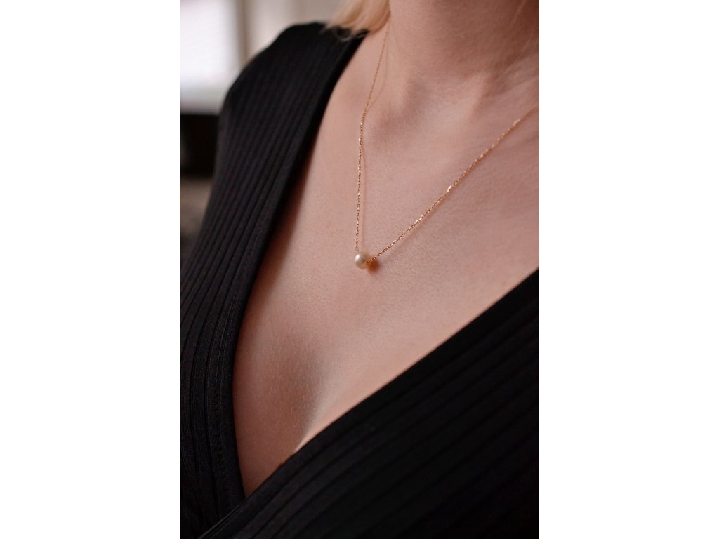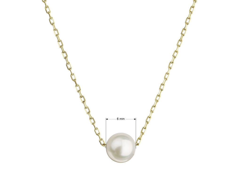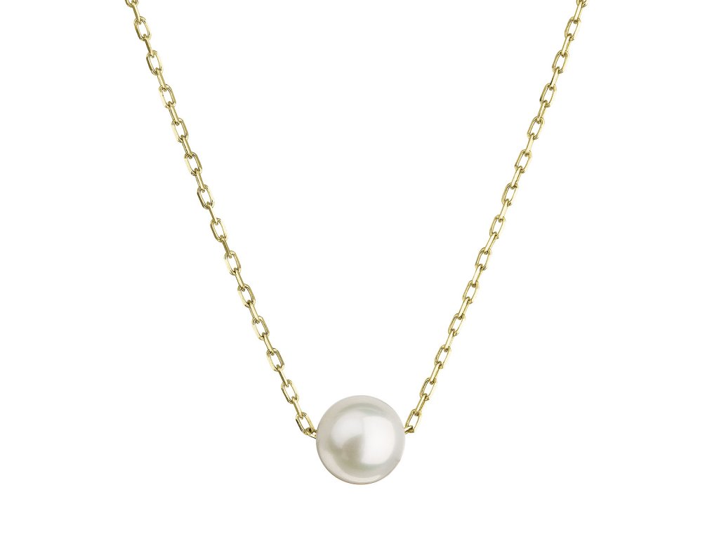Zlatý 14 karátový náhrdelník žluté zlato s bílou říční perlou 92P00027
