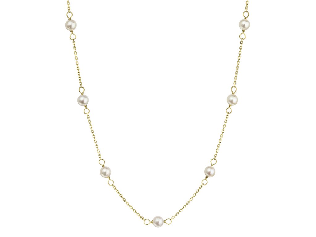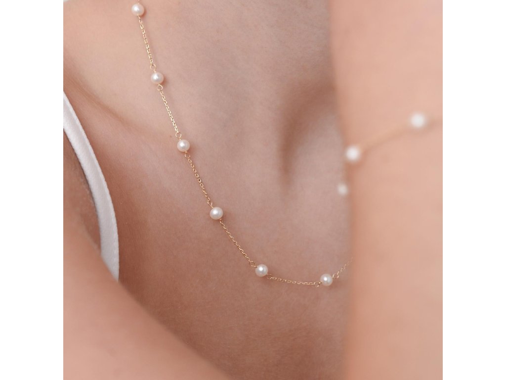 Parametry zlatého 14karátového náhrdelníku žluté zlato s bílými říčními perličkami 92P00028