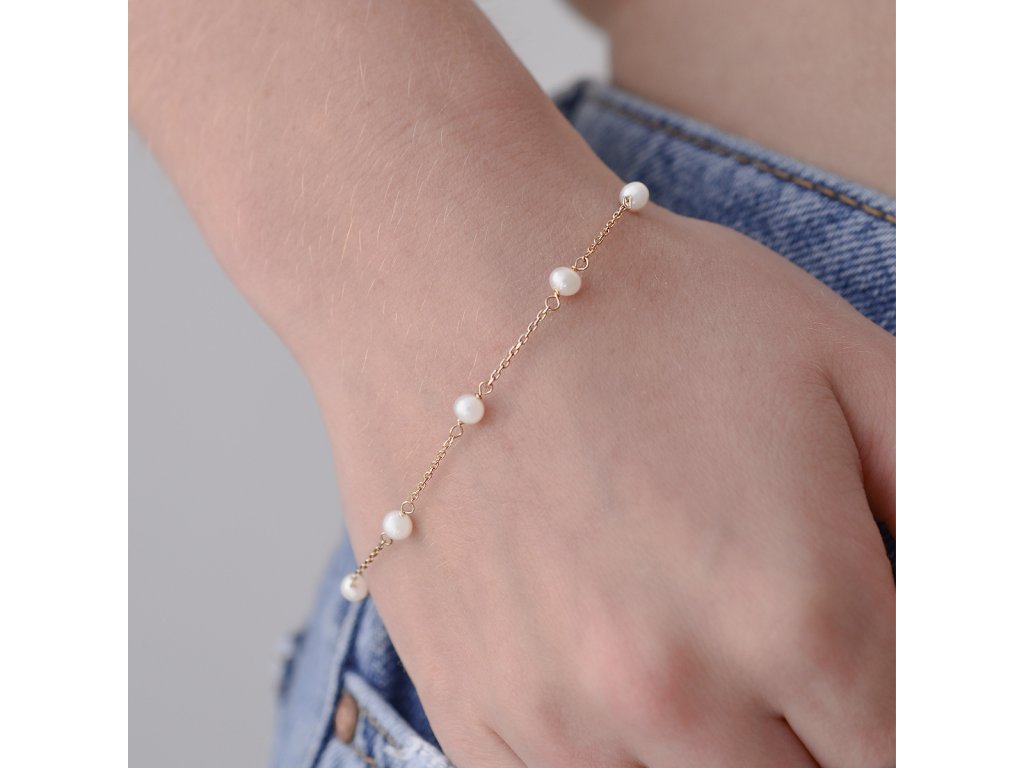 Zlatý 14 karátový náramek žluté zlato s bílými říčními perličkami 93P00015
