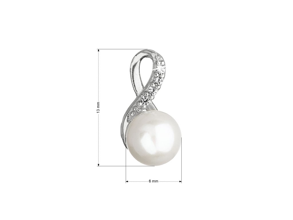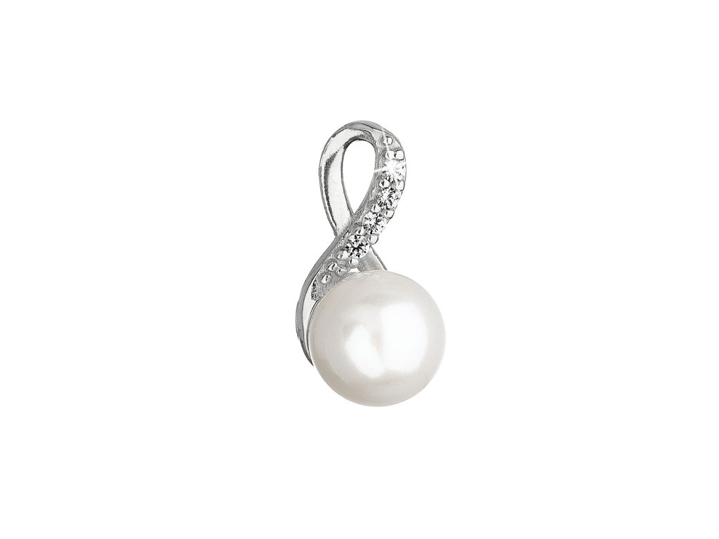 Zlatý 14 karátový přívěsek bílé zlato s říční perlou a zirkony 84PZ00008 nekonečno