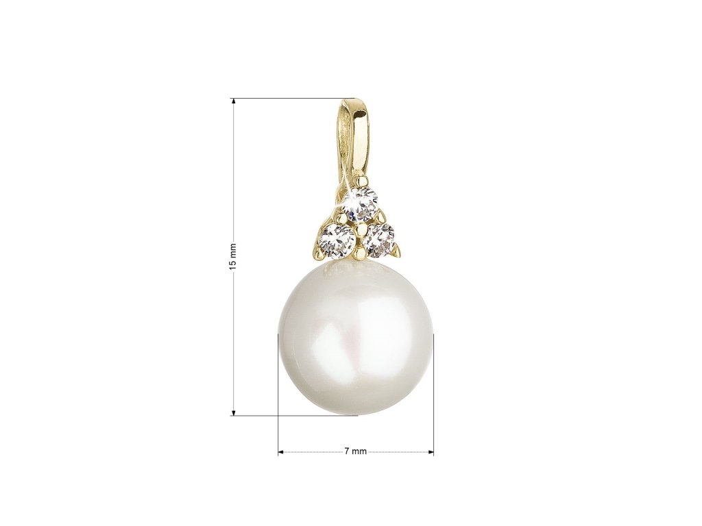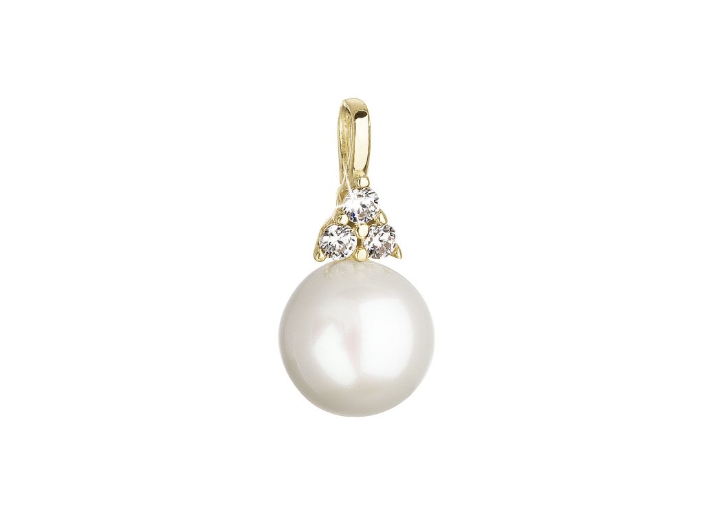 Zlatý 14 karátový přívěsek žluté zlato s bílou říční perlou a třemi zirkony 94PZ00005