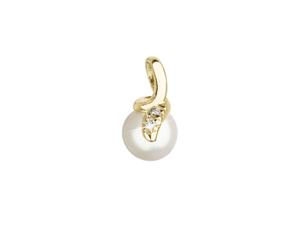 Zlatý 14 karátový přívěsek žluté zlato s bílou říční perlou a zirkony 94PZ00009